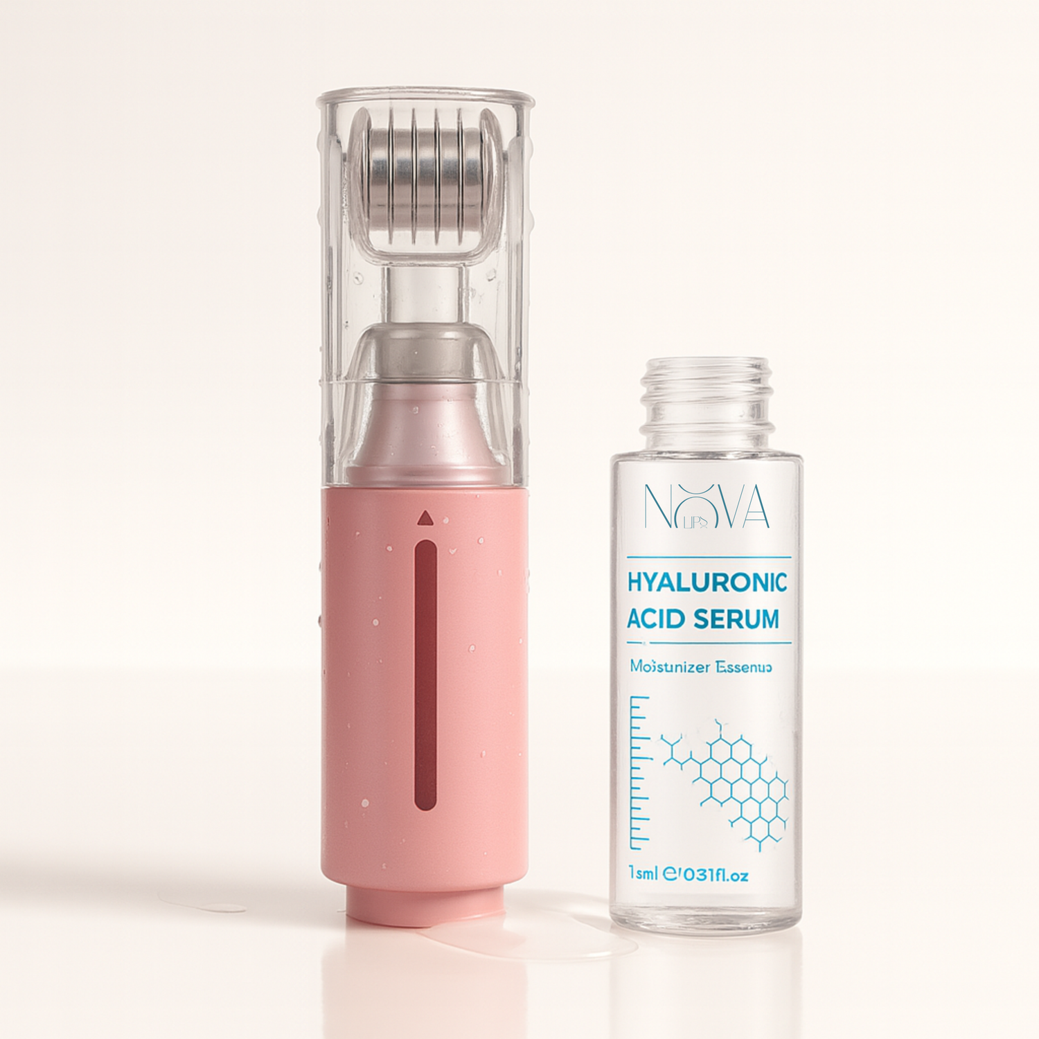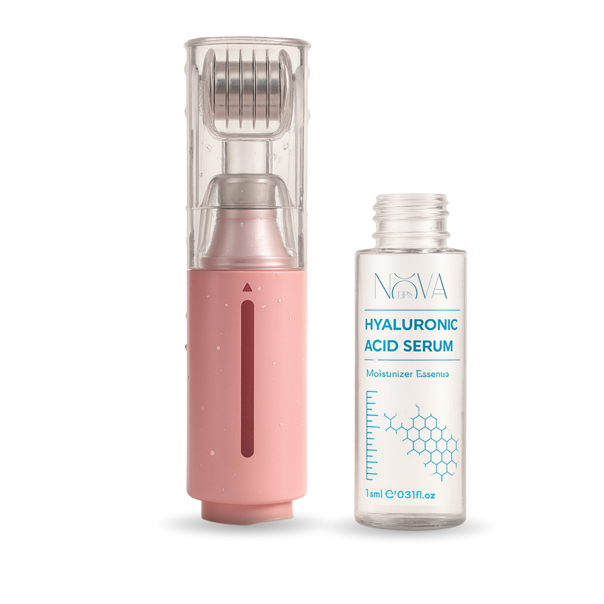 NovaLips™ was born from a simple mission: to offer women the same plumping and hydrating effect as professional lip injections, but without pain, risk or compromise. Developed in laboratory by experts in dermal science, our micro-infusion system uses hyaluronic acid and collagen peptides to visibly enhance lip volume and softness naturally.